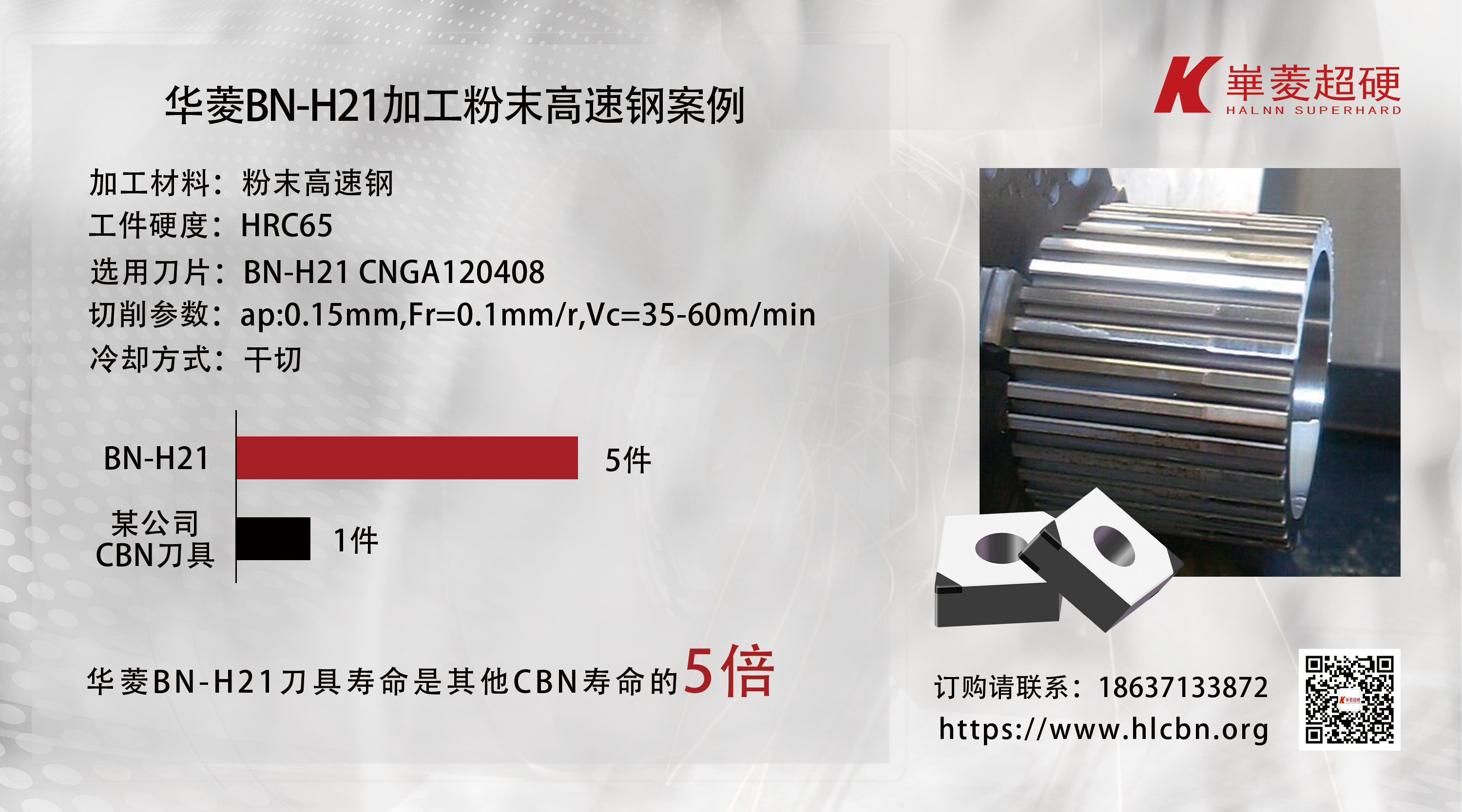 - 優(yōu)異的耐磨性:華菱CBN刀具的耐磨性遠超傳統(tǒng)刀具,確保在高速鋼加工中的長壽命和穩(wěn)定性。